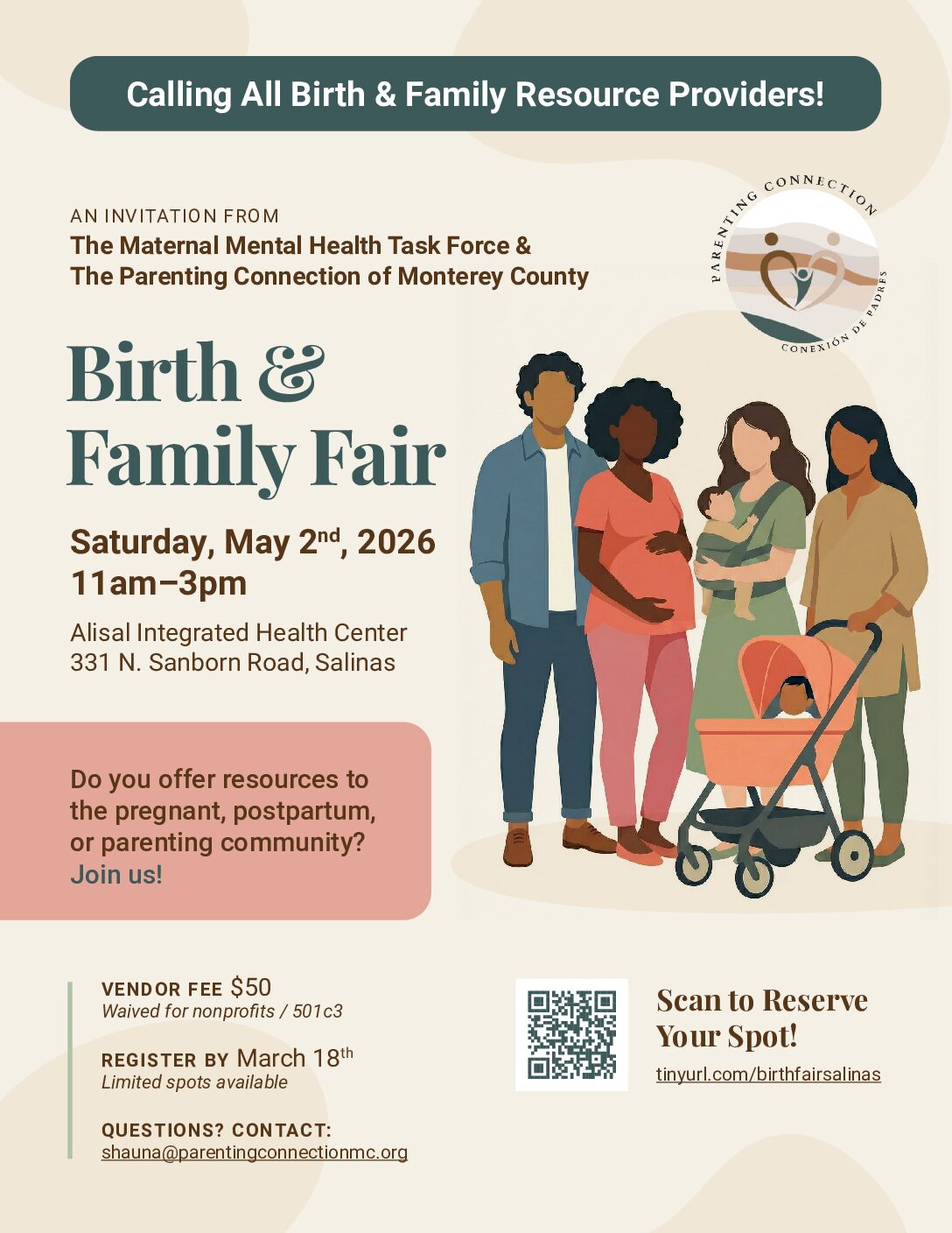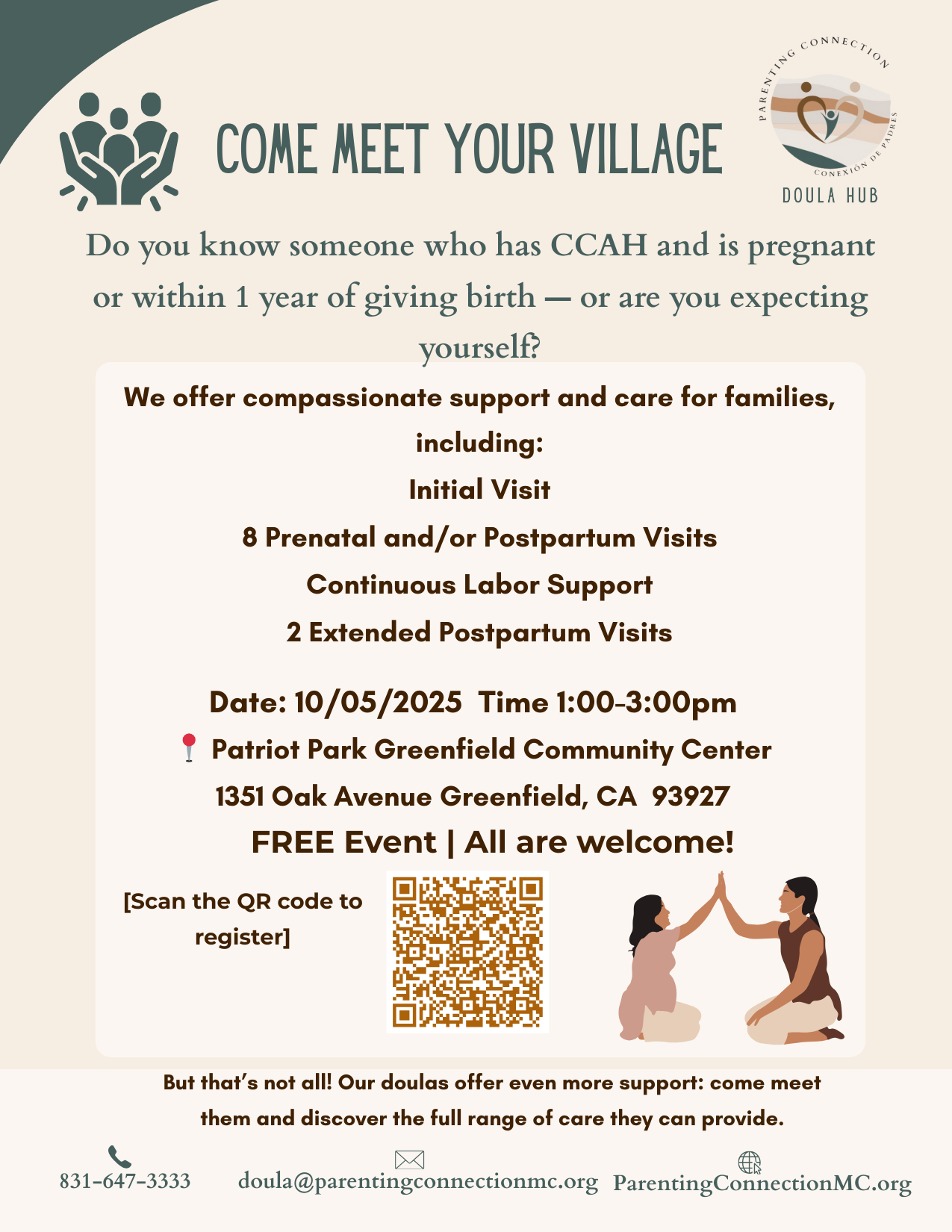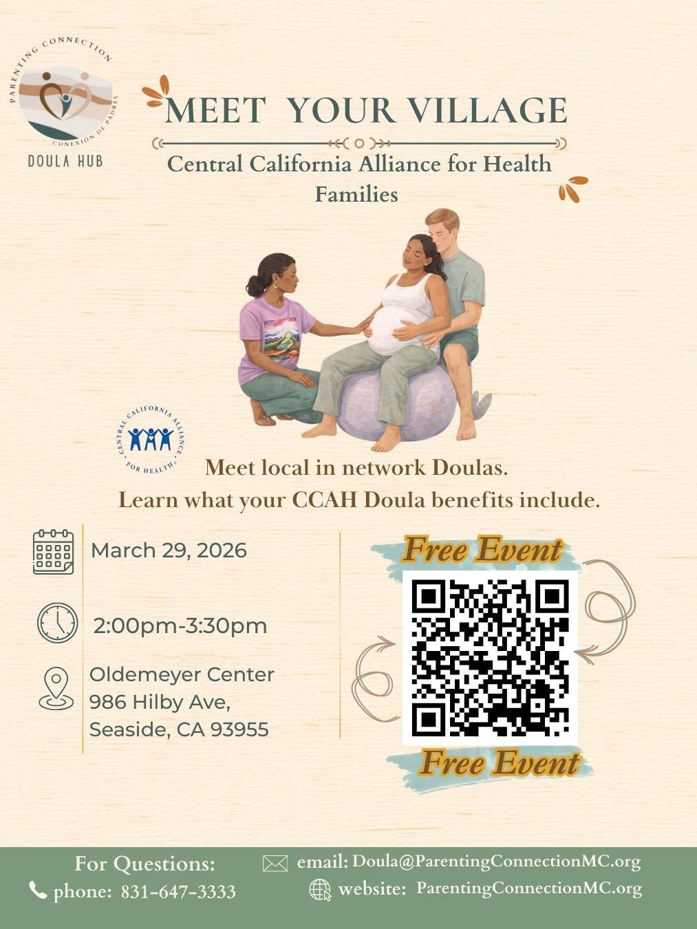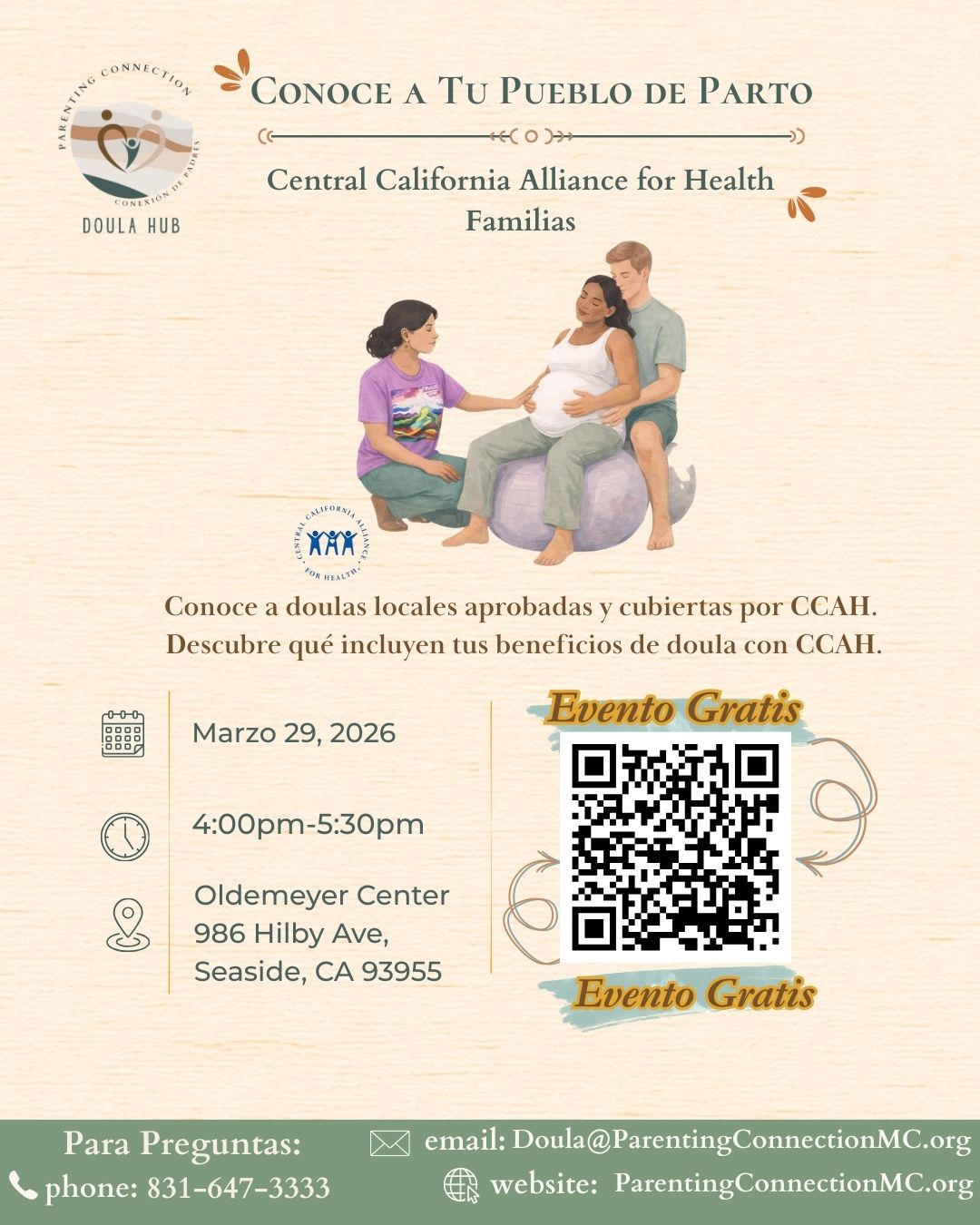 Join Parenting Connection’s Doula Hub for a free community event designed for Central California Alliance families who are pregnant individuals and within one year postpartum.